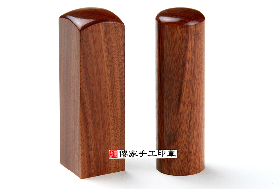 開運印章印材:紅紫檀木印章 (一圓一方)