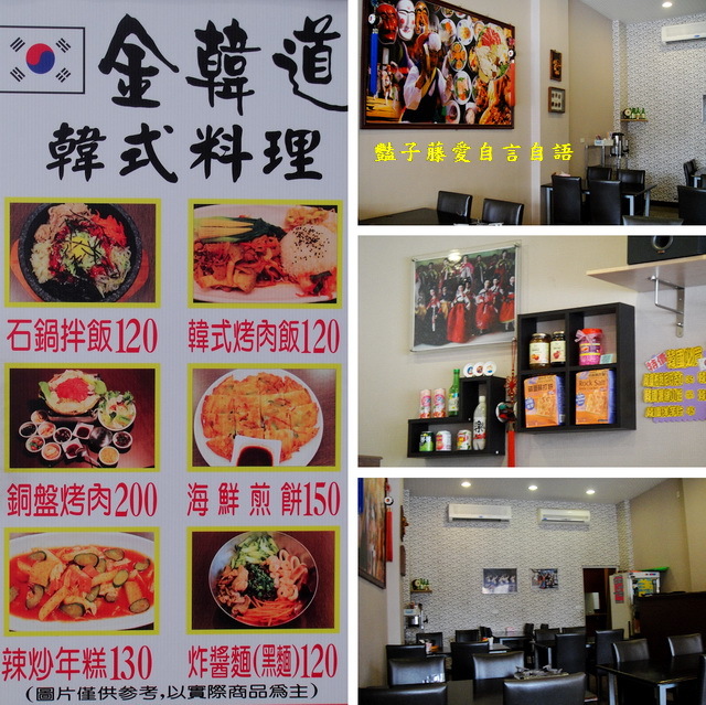 金韓道有烤肉類、鍋類、石鍋類、飯類、煎餅類、湯麵和熱炒類等韓式料理. 金韓道韓式料理店面不大,簡約整齊的用餐環境可以慢慢地享用美食.