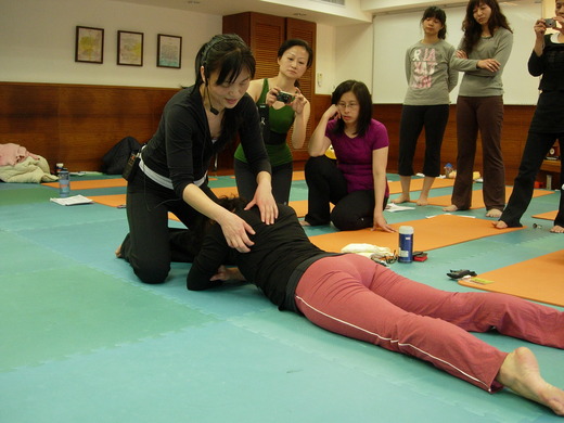 經絡瑜珈講義 經絡瑜珈是將體位法結合中醫經絡原理,疏通經絡、臟腑、穴位而達到却病強身的目的。 經絡的作用 《 1聯繫全身 經絡可以把人的內臟、四肢、五官、皮膚、肉、筋和骨等所有部分都聯繫起來,每一條通路通暢,身體才能保持平衡與統一,維持正常的活動。 2運行氣血 氣血要通過經絡輸送到身體各處,滋潤全身上下內外,每個人的生命都要依賴氣血維持,經絡就是氣血運行的通道,通過經絡把氣血等營養輸送到全身,人才能有正常的生理、心理活動。 3人體屏障 外部疾病侵入人體往往是從外部表面開始,再慢慢向裡發展,也就是先從皮膚開始。經絡向外與皮膚相連,運行氣血到表面皮膚,好像磚瓦一樣疊成堅固的城牆,每當外邪入侵時,經絡首當其衝發揮抵禦、保衛的屏障作用。 4反映內在 疾病也會由內而生,「病從口入」就是因為吃了不乾淨的東西,使身體內的氣血不正常,從而產生疾病。這種內生病首先表現為內臟的氣血不正常,再通過經絡反映在相應的穴位上。所以經絡穴位可以反映人體內在的疾病,這就是「以表知裡」 5調氣血 人體的潛力很大,我們的肝臟只有1/3在工作,心臟只有1/7在工作….如果它們出現問題,我們首先要做的是激發、調動身體的潛能。按照中醫理論,內臟跟經絡的氣血是相通的,內臟出現問題,可以透過刺激經絡和體表的穴位調整氣血虛實。這就是針灸、按摩、瑜珈等方法治療內科病的原理。 五臟:肝、心〈心包〉、脾、肺、腎 六腑:膽、小腸、胃、大腸、膀胱、三焦 《靈樞.逆順肥瘦》「手之三陰,從臟走手;手之三陽,從手走頭;足之三陽,從頭走足;足之三陰,從足走腹」手足各經脈互相連接,陰陽相貫,如環無端。 十二經脈和任、督二脈合稱十四經。十二經脈左右對稱地分佈人體兩側。根據臟屬陰,腑屬陽,內側為陰,外側為陽的原則。凡是屬於臟的經脈稱為陰經,多循行於四肢內側,上肢內側為手三陰經,下肢內側為足三陰經。凡是屬於腑的經脈稱為陽經,多循行於四肢外側,上肢外側為手三陽經,下肢外側為足三陽經。 〈功法練習〉 1鼠蹊功 2強膽功 3消脾功 4養肝功 5龜息功