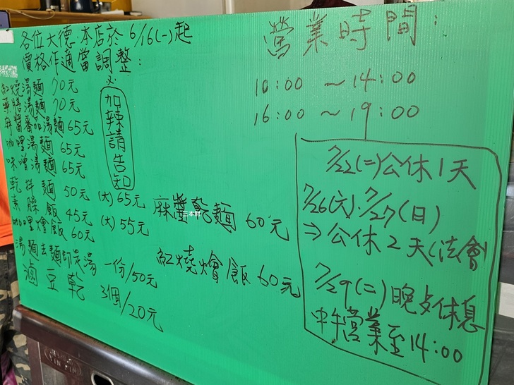 價目表...老闆說目前暫時無法供應飯類餐點