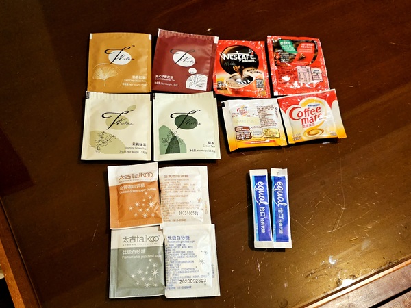 伯爵紅茶、英式早餐紅茶、茉莉綠茶、綠茶 雀巢咖啡、雀巢奶茶、黃金咖啡調糖、優級白砂糖、equal代糖