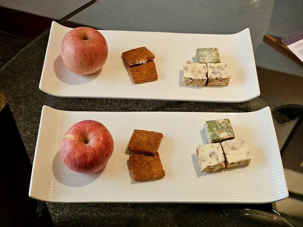那一次我們訂了2間行政客房房當務送來的時候我一直狂笑: 只有一顆蘋果+牛軋糖+餅乾,然後我直接拿給好友吃...