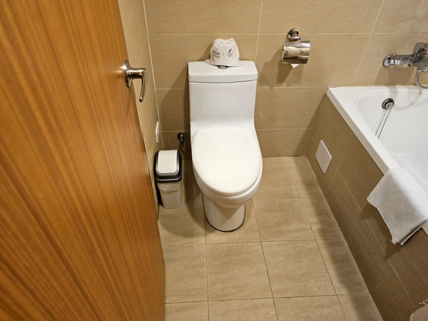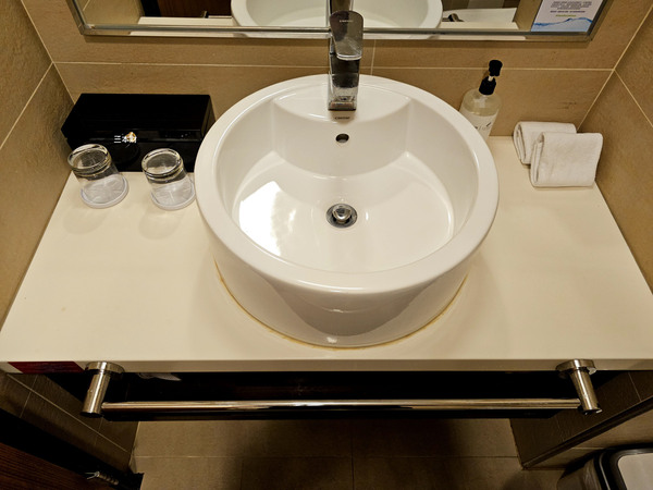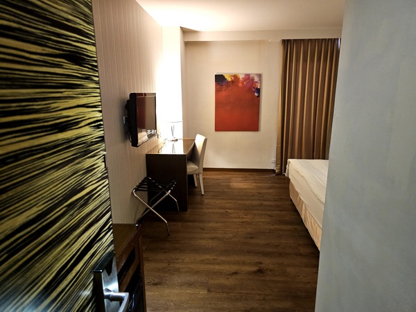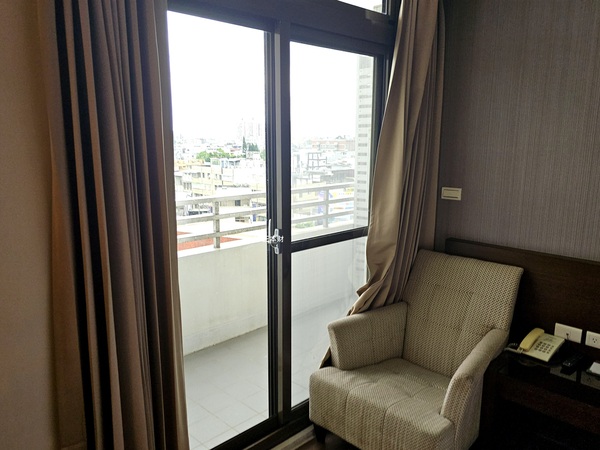 當天在櫃檯辦好入住手續後我隨即搭乘電梯上樓,這次入我住的是飯店最基本房型~精緻大床房,進入房間看到布局是屬於商務型的客房,雖然冰箱是空的但有基本的衣櫥、行李架、保險箱及客房拖鞋,比較讓我感到意外的是房間有獨立的陽台可以走出去陽台看看窗外的城景,以同等級的旅館而言洗臉台旁的備品給的算是蠻有誠意,沒想到還有浴缸雖然我並沒有多愛泡澡...