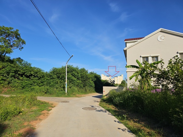 沿著鄉間小路繼續往前直走...下圖紅色箭頭就是店家的位置!