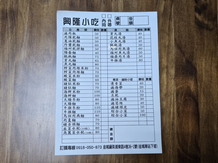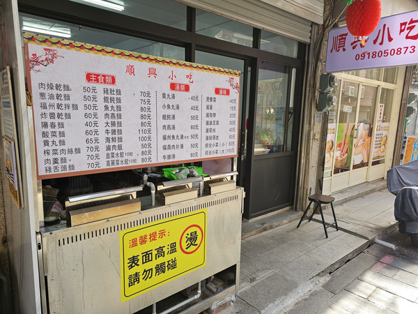 咦!〝興隆小吃〞是我打錯了嗎?其實一開始我也很疑惑!因為店家招牌跟菜單上的店名不同!!!這一天為了趕文件所以午餐吃的比較晚,原本打算到總兵署旁的梁記吃火雞肉飯,只是當我經過金城車站斜坡看到這間〝順興小吃〞,當時我停下車看了一下店家的菜單,有麵食、水餃、湯類及滷味,隨後還看到〝福州乾拌麵〞、〝福州魚丸湯〞...瞬間讓我回想起福州悅華酒店早餐熱騰騰的〝芋泥〞,福州西湖大酒店的〝魚丸肉燕湯〞、〝鍋邊〞以及〝酒釀蒸蛋〞...