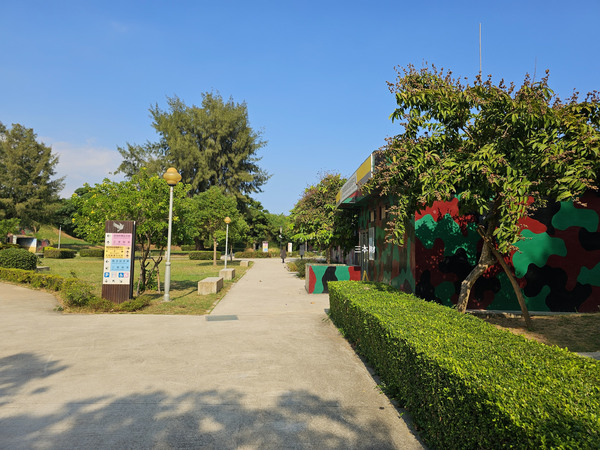 當天車子停放在金門精神堡壘前方停車場後就往園區裡面走