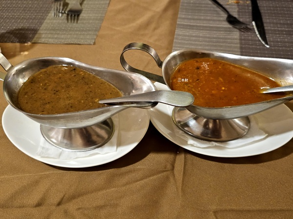 牛排醬汁~黑胡椒醬與蘑菇醬 黑胡椒醬的辣度如果可以在辣一些就更美味了 我也加了少許的蘑菇醬並不特別