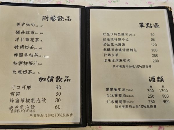 紅屋頂庭園西餐廳~菜單