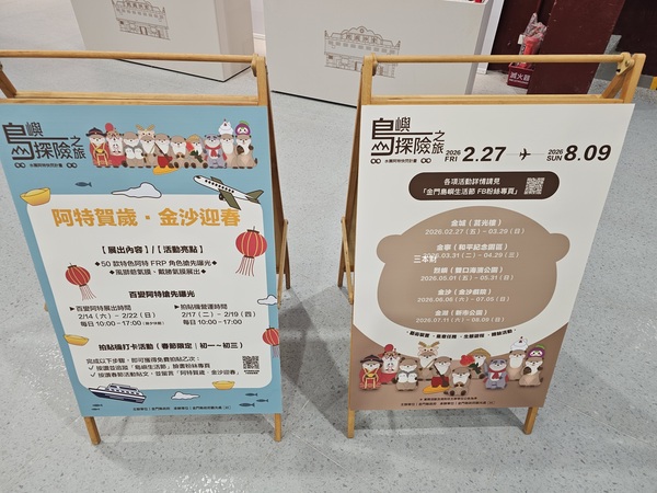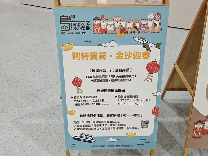 金沙戲院在上個月已正式對外開放參觀,隨著農曆新年即將到來由金門縣政府觀光處主辦的〝阿特賀歲‧金沙迎春〞~百變阿特展今天在金沙戲院正式亮相;這個特展的主角是由5個鄉鎮、10款不同造型的阿特坐在戲院的看台上;走進戲院您會看到之前曾出現在新市公園及莒光共融公園的〝戴勝鳥氣偶〞及〝風獅爺氣偶〞,往後一望則是:古裝阿特、打花草阿特、滴兒阿特、石蚵阿特、芋頭阿特、風雞阿特、風獅爺阿特、農夫阿特、花蛤阿特、衝浪阿特...