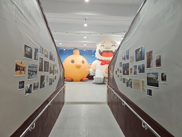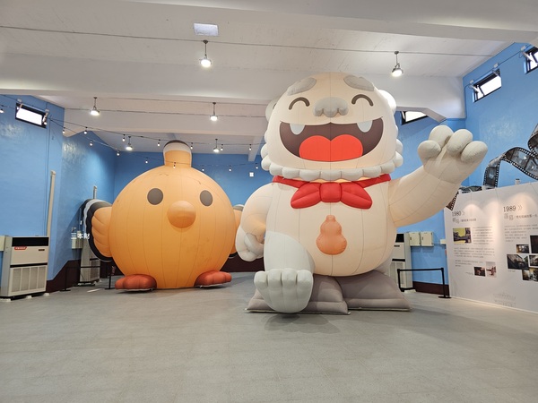 走進戲院映入眼簾的是〝戴勝鳥氣偶〞及〝風獅爺氣偶〞
