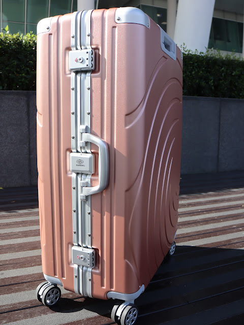 古斯尼Gusoini精品行李箱附上贈行李保護套 箱遇極光鋁框系列共有5色,當時在選時沙拉就很猶豫,比薩銀和熱那亞綠也都很喜歡,平常沙拉比較常穿紅色衣服,後來就挑了"米蘭金" 帶著『GUSOINI』"鋁框系列箱遇極光"行李箱就像將義大利精品工藝帶在身上
