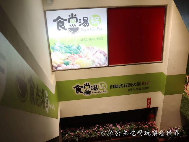 『食尚湯鍋』位在B1,電梯旁有樓梯可以下去,沿著樓梯間都有花草裝飾,可以放心地走下去不會暗暗的