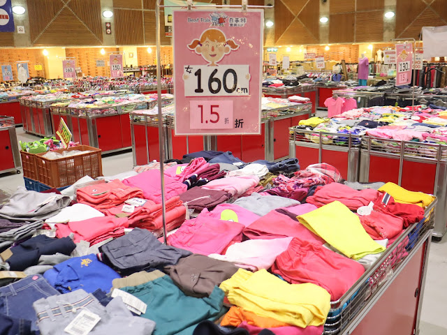tokuyo按摩椅這次由蔡依伶代言,牛牛說他想跟她合照,我想他可能壓力也很大需要紓壓了 媽媽們買到失心瘋的好地方,百事特童裝1折起 從兒童到大小孩、男孩、女孩都有 洋裝、外套1.5折 ELLE的服飾也在這裡面,很多好貨可以挑 花車上的包包、圍巾價格也都很便宜 花車上的價格真的都很便宜100元的衣服、鞋子 不能拆的上面會標示,拆封視同購買喔 逛到這裡我突然看到賣到160CM起不是我也可以穿,拿了一件很潮的粉紅色牛仔褲一比,還真的耶 看來改天我可以逛逛童裝了 這一整排的百事特童裝、牛仔褲,通通1折 超多童裝等你來挑選