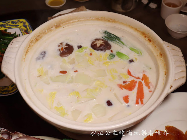 全麥的特製餅皮,可以吃到一粒粒麥的口感,覺得更加養生 其實平常吃烤鴨我就愛鴨皮大於肉,很享受那種咬下鴨油噗滋的感覺,鴨皮入口即化,剛好師傅片鴨時都會把鴨皮和鴨肉分開,真是太棒了,我吃皮,牛牛吃肉 一隻鴨能片下的鴨跟條不多,大概就是5~8片左右,特別酥脆 鴨跟條可以沾著砂糖一起吃 ,先感受他的酥脆,入口咬兩下就完全化開,口感真的很棒 這是沙拉第二次吃沾著砂糖的吃法,還是很美味 皮帶肉是整隻烤鴨中肉最為鮮嫩的部位 建議可以先吃原味再沾上特製的調醬提升風味 烤鴨三吃第一吃片皮鴨是固定的,另外兩吃可以5選2 包含:醬爆鴨架、翡翠鴨絲、鴨架小米粥、茉莉鴨骨奶湯、酸菜鴨湯,我們選了醬爆鴨架、翡翠鴨絲 翡翠鴨絲 將片皮鴨剩下來的鴨肉切絲與韭菜拌炒,鴨肉經過拌炒口感不會輸給片下來的鴨肉,還是很嫩並帶有嚼感 醬爆鴨架 這道一上桌香氣四溢,突然想來罐啤酒了,喜歡啃骨頭的朋友這道一定會很喜歡,吃的時候用手拿更方便,吮指的好滋味 一品豪邁鍋 入秋之後天氣漸涼,吃個火鍋最為合適,提供大份量的海鮮盤及牛奶藥膳鍋底,暖身又暖胃 看到純白色的湯頭本想應該只是牛奶湯,入口滑順帶點藥膳香讓我眼睛為之一亮,湯一沸騰還沒加海鮮可以先喝一下原味 師傅使用了5種藥膳及牛奶熬煮多時,非常溫潤,若吃完還不過癮也可以單點粥底,吸收所有精華,把"一品豪邁鍋"的美味全部下肚 大份量的海鮮盤包含: 波士頓龍蝦300~400G、紅蟳400~500G、4~5顆大干貝、4顆鮑魚,另外也會搭配時令食材,像是淡菜、竹蛤、扇貝、大蛤蜊、青蛤..等 請依當天供應為主 海鮮盤上那紅色鯛魚花朵真是太搶鏡了 厚實的干貝透著光澤 龍蝦、紅蟳也都躲在後面只探出頭來 彈牙的龍蝦肉質,我們一直都很愛,波士頓龍蝦的肉質也相當甜美 大草蝦,口感扎實 巴掌大的扇貝帶著卵黃,看起來特別好吃,貝柱也很大顆 紅蟳的蟹殼也被敲的蠻碎了,很方便食用 掀開蟹殼給大家看看,鮮紅蟹黃看起來是不是特別好吃,現在正是吃秋蟹的好時節 鮑魚的口感細嫩,一人一顆大呼過癮 鮮蚵、蛤蜊也不錯 鮮蚵腥味不會太重,味道鮮美 海鮮盤份量很多,雖是大砂鍋卻也沒辦法全部放進去,就滿出來啦!! 一品豪邁鍋根本就是痛風鍋來著,龍蝦、鮑魚、干貝、紅蟳,通通都有了,太奢華了 想吃火鍋又想吃烤鴨,來到『六福客棧(金鳳廳)』都能得到滿足 地址:台北市中山區長春路11F 電話:02-2507-3211 營業時間:11:30~14:00、18:00~21:30 粉絲團:『六福客棧』 官網:『六福客棧』 2019年六福國際線上旅展烤鴨、港點、一品豪邁鍋等限時優惠58折起,僅至11/15止,想搶優惠動作要快喔! 沙拉飯團line@帳號:https://line.me/R/ti/p/%40tnl0956e ,歡迎交換意見, 加入後請先按個表情符號,沙拉才能看到你喔 |