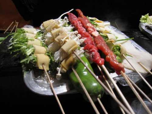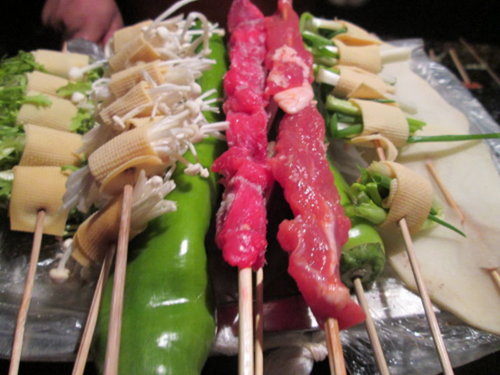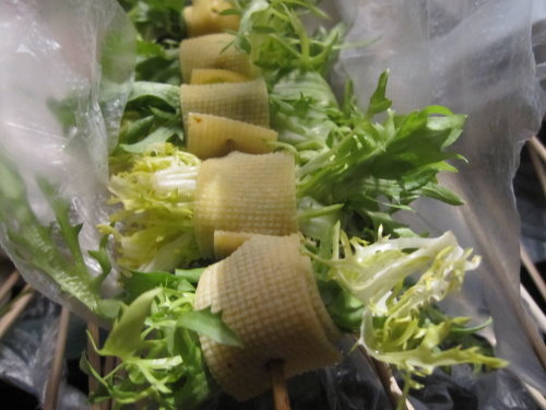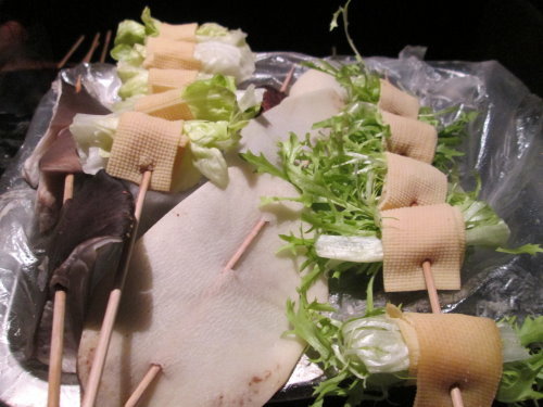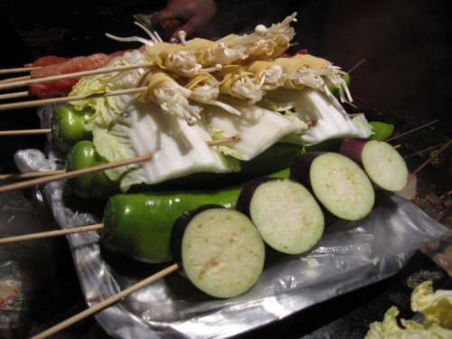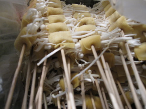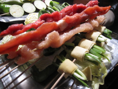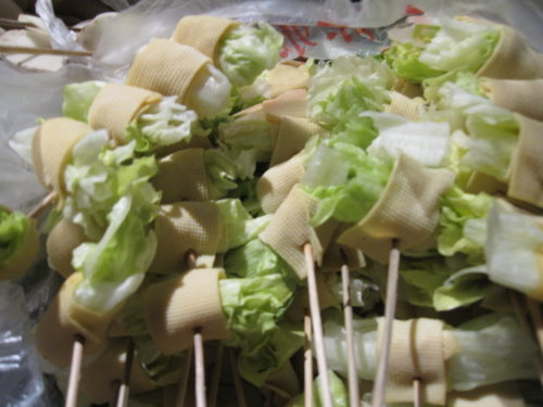 這裡的蔬菜都有類似豆皮的裹住這樣才有辦法串起來烤