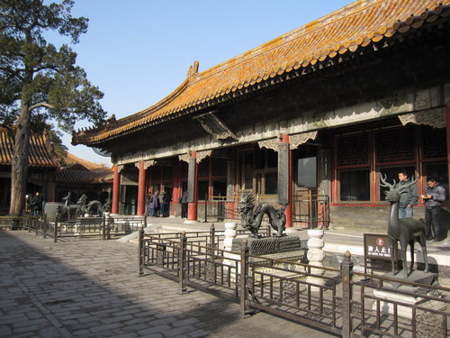 養心殿:清朝自雍正之後,皇帝在故宮內的實際居所 慈禧、慈安二太后垂簾聽政就在養心殿東暖閣。內設寶座、御案,皇帝在此辦理日常政務及接見大臣