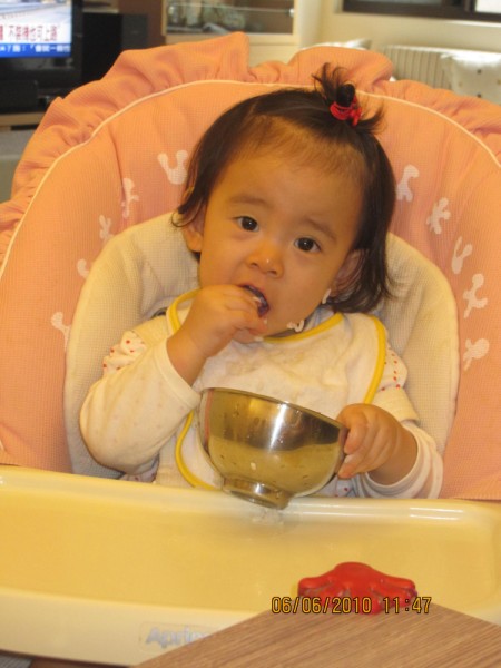 媛媛也兩歲半了,很會說話記憶好,媽媽買的童書和喬虎DVD幾乎背得滾瓜爛熟,連英文也在媽媽的教導下很流利的翻書朗誦;阿公很慚愧高職畢業英文只懂的26個字母,還不會發音呢!