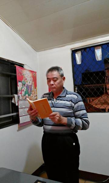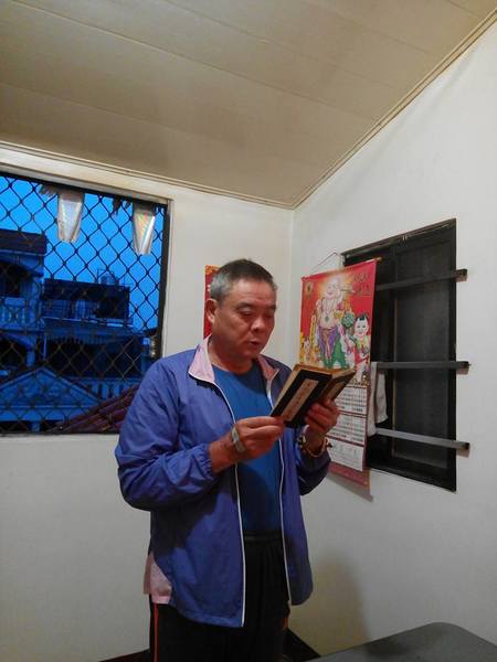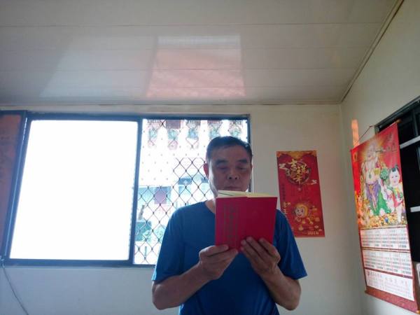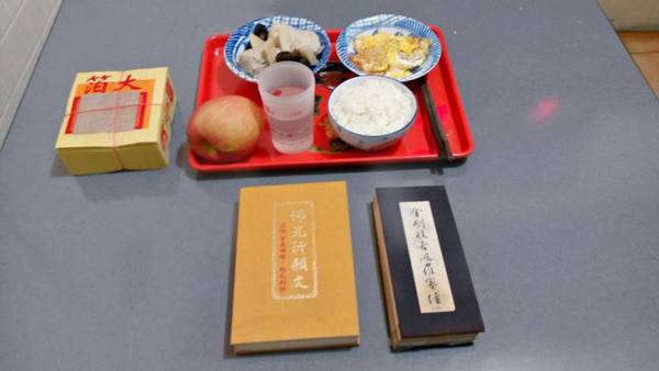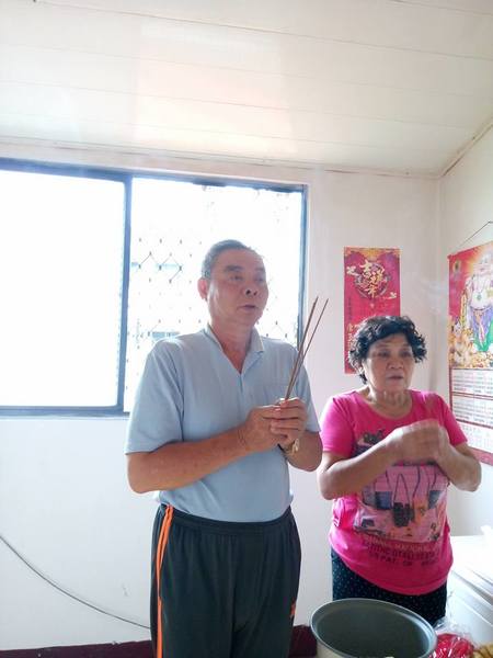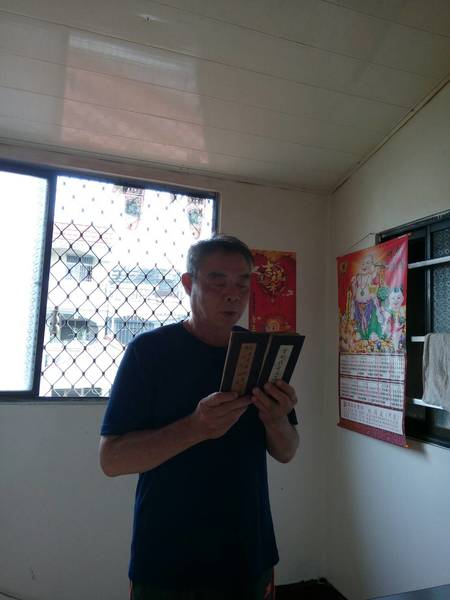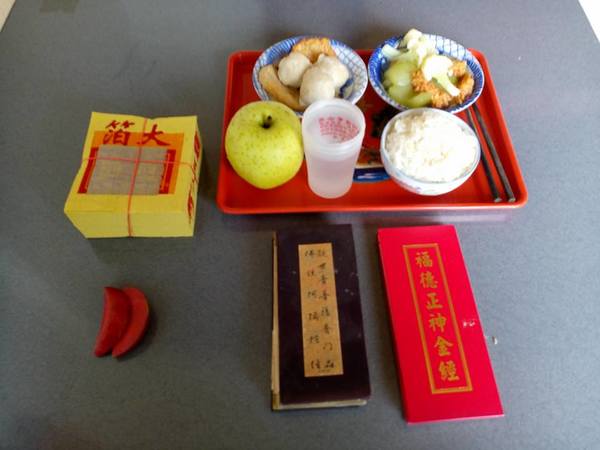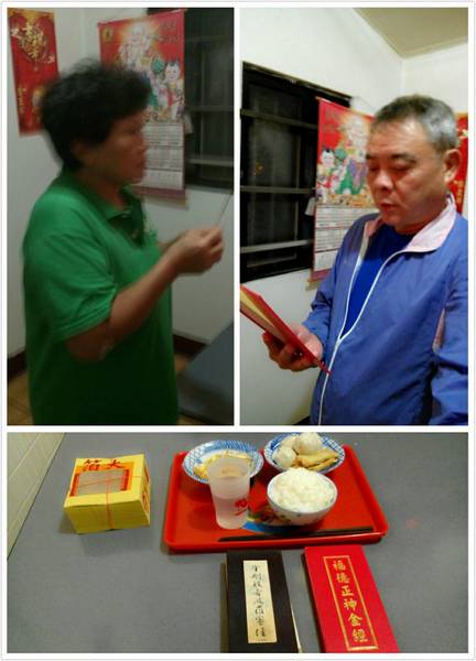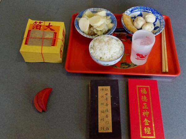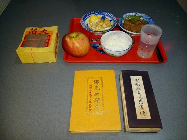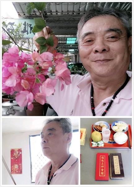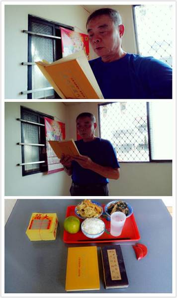《10/15日農曆9月15日,早飯由阿真媳婦拜,我清晨5點參加大連里志工三清功德會健走, 晚飯阿真準備好飯菜,由我負責給阿姆拜晚飯,送普門品彌陀經迴向給阿母。》