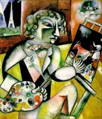 夏卡爾的精彩人生 今天下午, 到百齡高中參加" 夏卡爾" 教師研習營 之前, 對這個人的印象是, 他的名字常常是為汽車旅館所用.... 在陳淑華教授的引導下 來認識這樣有趣的畫家的一生 我注意到, 他筆下的美麗女子, 都有男士懷抱, 很幸福的樣子 這麼個猶太畫家, 歷經兩次世界大戰 竟然活到98歲 一直很受女人照顧, 從母親, 未婚妻, 老婆, 女友, 第二任老婆... 人生至此, 應無遺憾.... 我幾乎忘了, 應該介紹他的畫, 他的思想, 他的豐功偉績..... 但是, 沒有女人, 沒有幸福, 其他都是空談, 也就不是夏卡爾了....