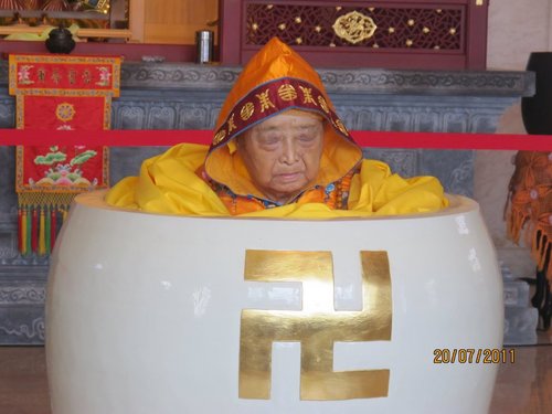 觀音老人,悟明長老坐缸法相 祈請觀音老人,悟明長老,早日乘願再來度眾,南無觀世音菩薩,南無阿彌陀佛! 悟明長老昨午於觀音成道日圓寂,高山仰止德澤永懷。廣欽老和尚預知時至告訴悟老