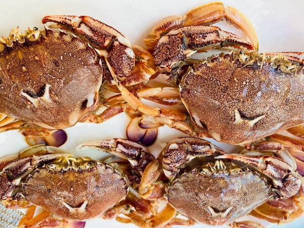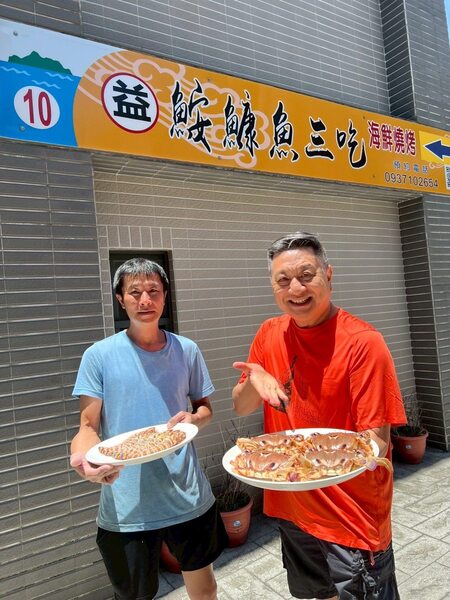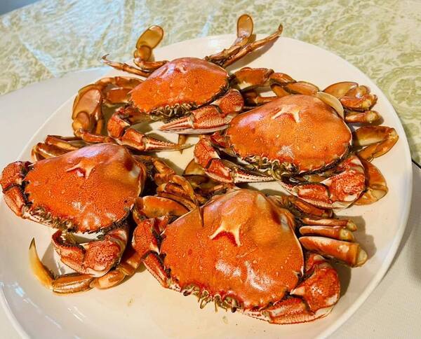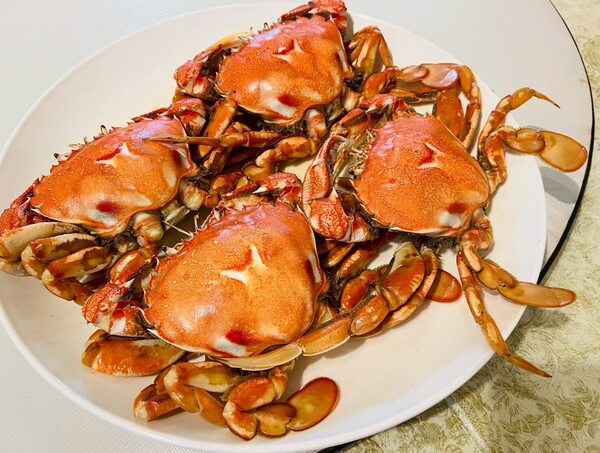 宜蘭頭城大溪漁港「鮟鱇魚三吃」阿益老板這回幫忙張羅本港鮮活大隻公蟹清蒸