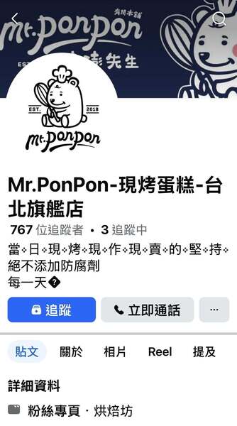澎澎先生當日新鮮現做現烤現賣蛋糕