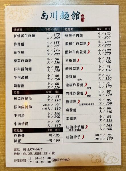 「南川麵館」總店及各個分店貨真物實舊雨新知吃好逗相報