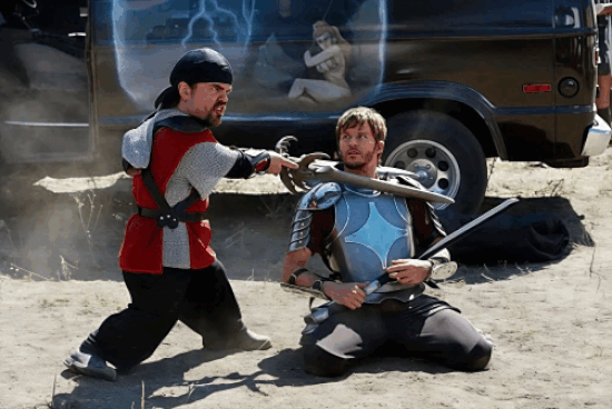 ◎ 劇情簡介 年紀不小、吊兒郎當的喬 (雷恩·昆圖 飾) 被女友貝絲 (由瑪格麗塔·列維耶娃 飾) 拋棄,心灰意冷之際,他被兩位損友艾瑞克 (由史提夫·贊恩 飾) 和亨 (由彼特·丁拉基 飾) 帶回了吸毒酗酒的老路。在一場顛倒迷幻的夢境過後,喬突然驚醒,發現自己竟然穿上了一副中世紀的盔甲。原來在他昏睡期間,被這兩位中二病深度患者帶到了中世紀格鬥遊戲的營地。 既來之,則安之,喬和他的朋友們全副武裝,各自投身於遊戲和戰鬥中。不靠譜的艾瑞克還帶來一本魔法書,並舉行了降靈儀式。沒有人將這當真,但誰知他們離開後,竟真的出現一位魔女,展開了無情的殺戮。