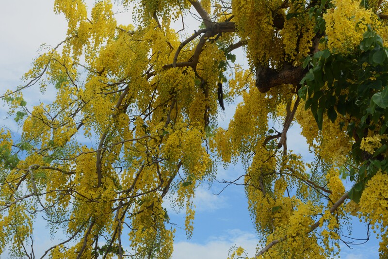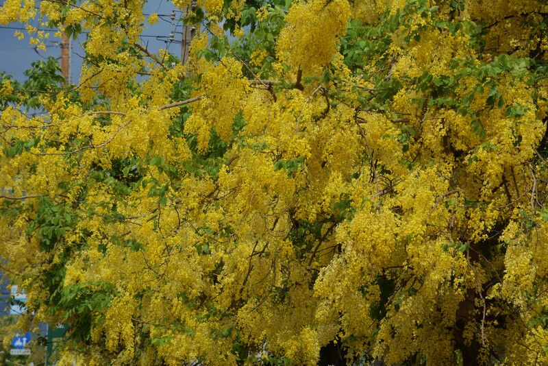 文、圖:老漁翁 話說【老漁翁徒步Round台Ⅱ】5/27~29這三天,從高雄走到屏東,有多處看到盛開的阿勃勒金黃色的花穗,美極了!(如下圖) 阿勃勒的花,金黃色,花穗自然下垂,所以被稱為黃金雨。因為其果實長條型,被認為與舊時代教師手中的教鞭相似,也成為我的母校,國立臺灣師範大學的校樹。阿勃勒是泰國的國花,當地稱為「Dok Khuen」,其黃色的花瓣象徵泰國皇室。 阿勃勒的適應力極強,在台灣,北至台北,我家前面碧湖公園有好幾棵阿勃勒,南至屏東都有,這次在高雄屏東看到的阿勃勒,比北部的更豔更茂。 ↓以下選擇幾張5/27~29所照的照片 |