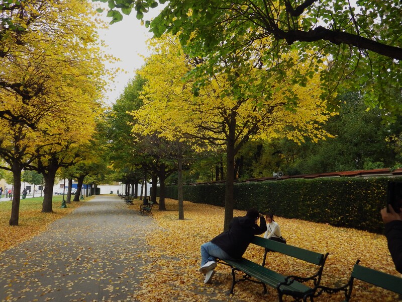 文、圖:老漁翁 【奧捷10日第二天天第一站來到維也納的貝維蒂爾宮,又名美景宮,一進大門,成林金黃色的楓樹及滿地落葉,很是浪漫,很是醉人,是我看過最美的秋景,身歷其境,猶如畫中,稱為美景宮是有道理的。 美景宮是位於維也納,是一個巴洛克建築風格的宮殿,曾是哈布斯堡王朝將軍歐根親王的宮殿。現在是奧地利國家美術館所在地,二戰期間,宮殿曾遭到破壞,戰後得到修復。 ↓2025.10.23.首度造訪黃進浪漫的貝維蒂爾宮 |