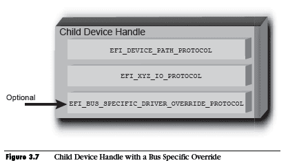 Bus Driver可以選擇性地安裝Bus Specific Driver Override Protocol到每一個Child Handle. 這個Protocol會使用在Driver連接到Child Handle時, 呼叫Boot Service ConnectController(),