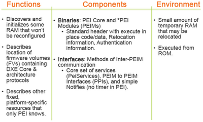 下面分幾個部分介紹PEI Pre-permanent Memory Environment: