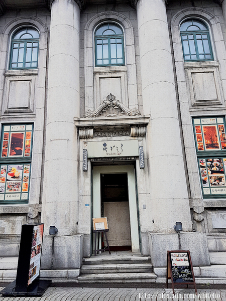 這家由舊安田銀行改造而成的和食餐廳「花GOKORO」,不只我喜歡,連當地人也愛。 這棟被指定為「小樽市歷史建築物」的餐廳建築,外觀看起來像博物館,內有一棵兩層樓高的櫻花樹,昔日銀行內的巨大金庫仍被保存至今,加了強化玻璃保護的金庫門,成了通往廁所的入口,可說是另一種「黃金屋」呢!