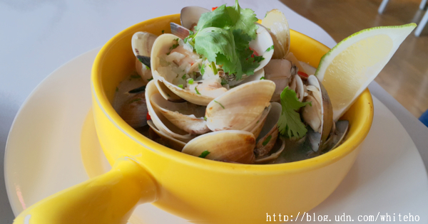 這道葡式快炒鮮蛤(220元)也是適合夏日的開胃菜,新鮮、飽滿的蛤蜊,以葡國菜做法加入洋蔥、蒜、薑、些許辣椒,及白酒拌炒,