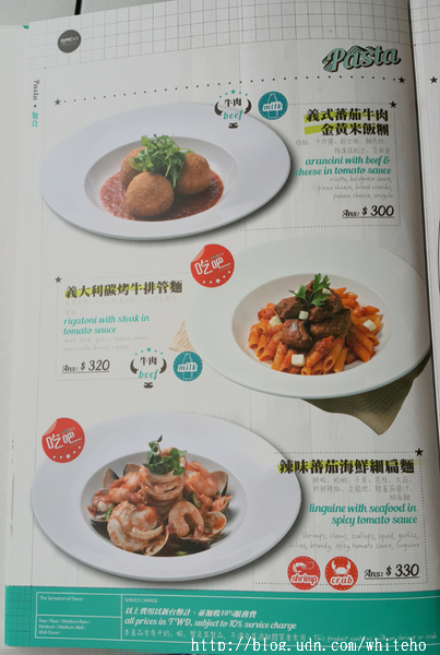 義大利麵本來就是餐廳的人氣料理,我們點了新款來嘗鮮 泰式烤牛肉蒜辣細扁麵(290元)可說是泰式燒烤與泰式醬麵的創意組合,牛後腿內側肉以泰式辣椒醬、香茅、大蒜、椰奶、