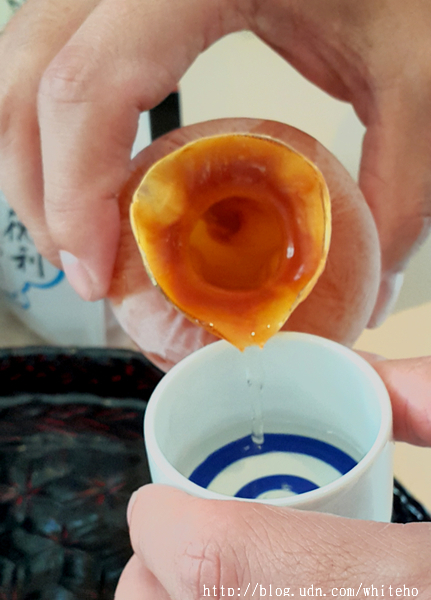 不在國宴內,而是主人家特別挑選的酒單,可說是宴席中的壓軸亮點。天然風乾的魷魚酒壺是日本岩手縣的特產,將溫熱65度C的清酒倒入魷魚酒壺中,讓魷魚與清酒的旨味相互融合出鮮甜美味。有意思的地酒飲法,令人留下深刻印象。