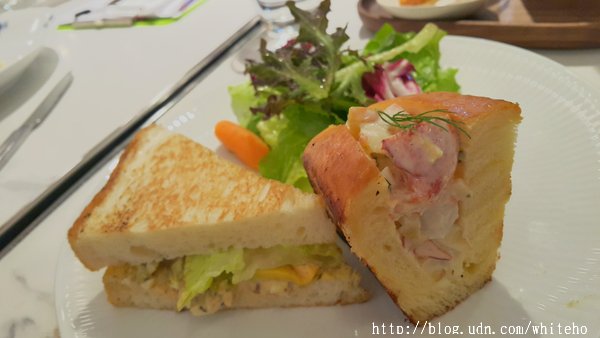 【波士頓龍蝦三明治】現煮波士頓龍蝦去殼取肉,份量足有半隻的龍蝦肉夾入香酥吐司中,口口吃的到龍蝦肉超過癮!