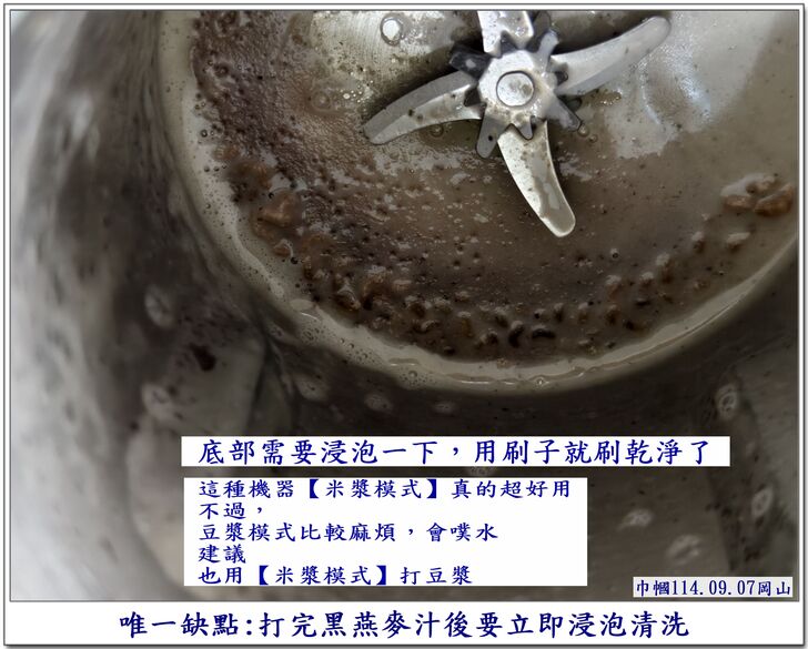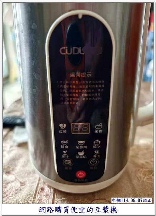 老公是個很重視養身的人~~ 常常喝的健康食品就是【無糖豆漿】 不是在市場買新鮮豆漿, 就是買超市罐裝豆漿 市場買的豆漿, 在兩天內就必須喝完,要不就會變質~~😖 超市買的就可以喝好多天都不會變質~~😱 雖然標榜的材料只有【豆子跟水】, 但是居然能保存時間那麼長😱 很久之前,也有買過【豆漿機】, 功能單一, 覺得不好用, 最後的下場也不知道去哪裡了(可能送人了😝) 後來,看了網路廣告,心又癢癢的😆 想說,再試試看吧~~ 以前買一個機器要3000多元(還只有一個牌子), 現在,大多是1000多到4000多, 品牌不少(大都是中國製造) 所以, 以嚐試的心理,買了一台最便宜的, 不好用,丟了也不可惜😆 第一次使用, 看網路影片教學,使用的是乾生豆~~ 真不好喝,有一股生豆的味道~~ 後來用泡發的生豆, 感覺還是不好喝~~ 而且, 煮豆漿時, 通氣孔會噴水,噴的到處都是😖 可是,水量並未超標啊~~😖 再上網搜尋, 有一位版主, 說用熟豆煮起來口感比較好~~ 然後,我就將豆子先蒸熟再打~~ 豆漿的話,還是會噴水~~ 我就在豆漿機下面墊著一條乾淨的抹布, 真的,煮熟的豆子打成的豆漿口感好, 雖然不似外面賣的豆漿有去【渣】, 但豆渣已經被處理的綿密,口感也不差~~ 就是,在過程中, 會噴水(可能是便宜的機器的缺點)😆 老公愛喝豆漿, 我愛喝某牌子的【燕麥】感覺好貴~~ 一般泡的燕麥,也是可以接受, 但嫌麻煩, 知道是好東西,卻有點懶~~😆 有天,突發奇想, 用豆子加燕麥片不就是可以打成【燕麥粥】嗎? 用喝的比較快~~ 因為用豆漿模式會噴水, 試試看用【米漿】模式看看~~ 結果~~ 感覺不錯~~ 口感細密,在加熱過程中不會噴水👍 黃豆、黑豆輪流食用~~ 還有預約及保溫程式, 晚上睡覺前設定, 早上就可以喝到熱騰騰的米漿了👍 唯一的缺點, 就是使用過後,因為有沸騰煮沸, 所以, 底部都會留有【黏底】的殘渣~~ 需要浸泡後, 再用刷子刷洗、晾乾~~😆 當然, 機器上還有一項程式【清洗】, 我不太信任它, 還是自己看著洗比較安心~~ 好在也不是很難刷洗, 只是稍微麻煩點 (沒辦法,處女座的就是龜毛😝) 這是我使用心得,跟大家分享😁 ~~~~~~~~~~~~~~~~~ 很便宜的【豆漿機】 過程快又不錯~~ 豆漿、米漿都會有煮沸過程喔~~