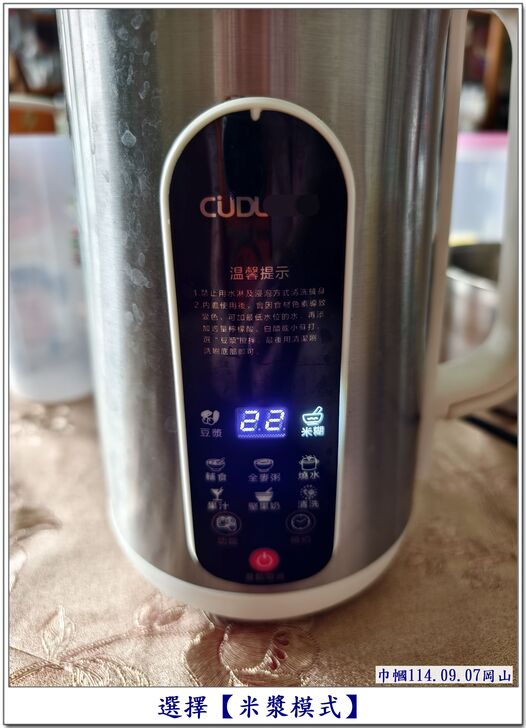 選擇【米漿】模式, 預計時間是22分鐘, 可能我是用蒸熟的豆子, 所以時間比較短 忘記測量時間了😝