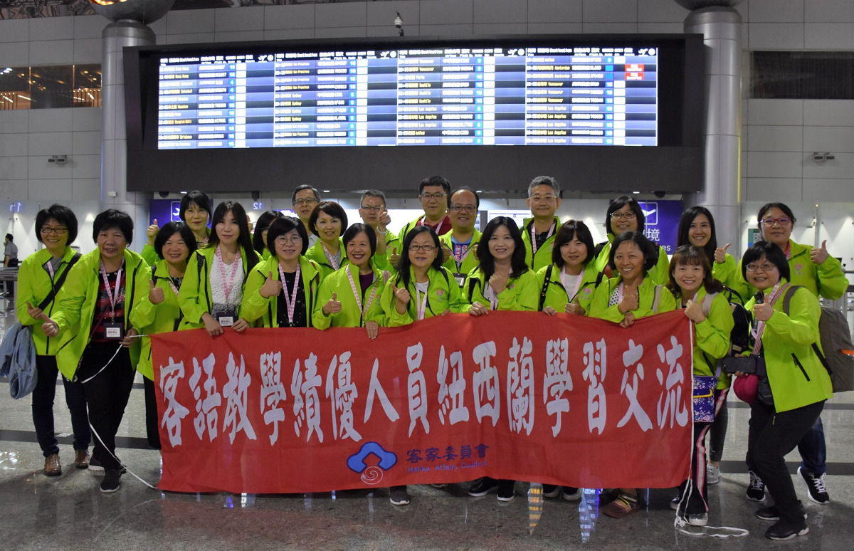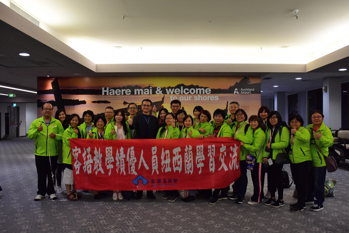 客家委員會「107年推動客語教學績優人員赴紐西蘭學習交流」參訪活動 客委會為鼓勵推行107年度客家語言及客語教學成效優良人員,出國汲取紐西蘭毛利語之幼兒園、小學、大學及社區、語言巢等推動語言復振及保存經驗,於108年8月3日至12日(計10天),由文化教育處孫處長于卿,率相關團員等共計23位(客委會同仁2名,專家學者2位,獲頒107年度推動客語績優及客語沉浸式教學人員19位[含縣市政府公務人員、國民小學校長、教師、教保人員及客語教學老師等]),赴紐西蘭奧克蘭、羅托魯瓦及漢彌爾頓等鄰近地區之毛利語學習環境,觀摩學習及交流。 【8/3(六) Day1】 行前準備及桃園國際機場第二航廈集合,登機前全體團員合影