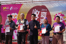 2011台東好米收冬祭~八方好客嘉年華 PART04【藝文表演】 100.12.4(日)10:00~16:00/台東縣客家文化園區 在玉清宮謝天祭典結束後,所有與會者旋即轉往台東縣客家文化園區展開「哈客藝文宴&客家手創市集」閉幕活動,節目包括金曲歌后曾心梅等藝人的表演,另有連續三年榮獲全國生活客語學校觀摩賽戲劇類第一名的關山德高國小傳統客家戲劇表演,以及來自高雄的哈旗鼓文化藝術團的演出……等,活動中並由縣長黃健庭及客委會范處長分別頒發辦理「那一天,我們一起瘋的客家」照片入選作品30件的得獎者。