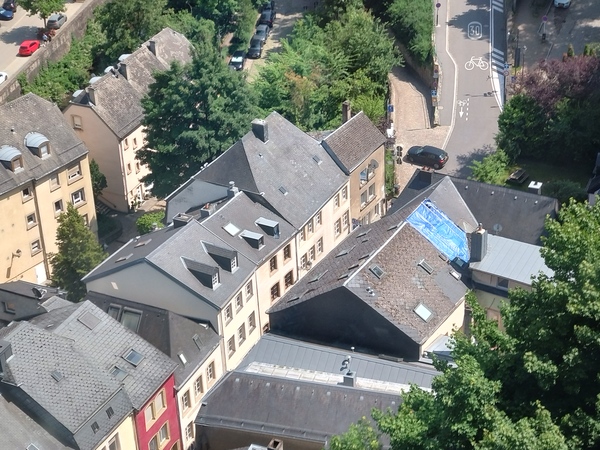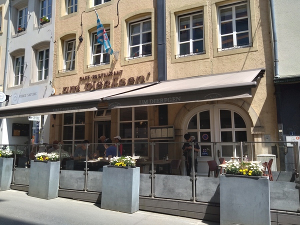 6. Café-Restaurant Um Dierfgen面前的Côte dEich,確實是一條向南傾斜的斜坡道(Côte),著名的盧森堡地下要塞,就位在附近的阿爾澤特河(Alzette)峽谷。位居阿爾澤特河和佩特羅斯河交會處,建立在地下要塞基礎之上的上城區,新古典主義風格的樓房櫛比鱗次,有些樓房冠上深灰色屋頂,有些樓房豎立別緻的山牆;街道兩側不乏咖啡雅座,展現19世紀末葉的城市丰采。漫步其中,彷彿可以遇見奔馳的馬車,或者穿戴盔甲的戰士。