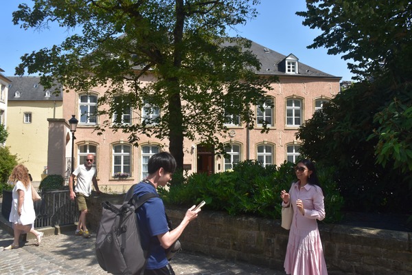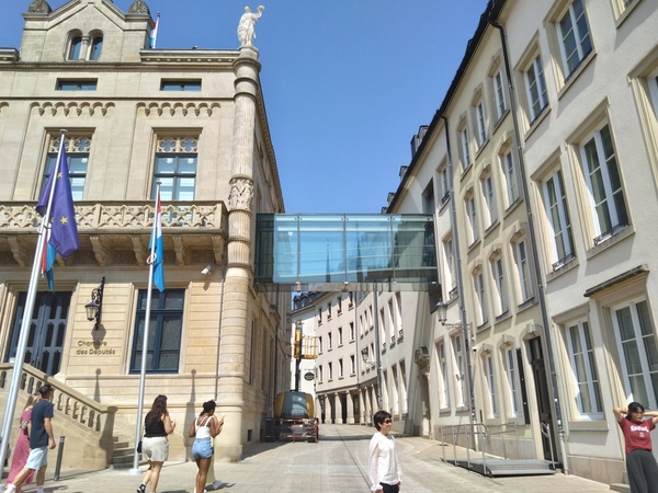 出生於1896年1月23日,夏洛特大公在1919年1月14日即位。第二次世界大戰爆發之後,德國在1940年入侵盧森堡,大公被迫流亡法國、葡萄牙、英國、美國,以及加拿大;透過英國廣播公司(BBC),夏洛特大公發表演說,更獲得美國總統羅斯福的支持,鼓舞遭受納粹統治的盧森堡人民。1964 年11月12日退位,1985 年7月9日逝世,國務部前的塑像,以及銜接上城區和歐洲聯盟法院的橋樑,表達人們對於夏洛特大公至高無上的尊敬。 當我們經過夏洛特大公塑像時,一名佩戴墨鏡、身穿雪白衣裳的網美將手機交給弟弟、請弟弟幫忙錄製短片;只見網美沒有特別的肢體動作,也沒有特別的表情,只在黑瓦白牆的國務部前徘徊。 “Where are you from?”(請問妳來自哪裡?)錄製完成以後,我們不禁問到。