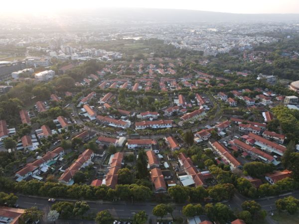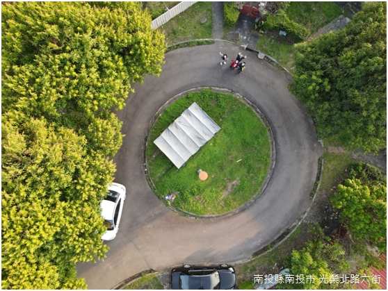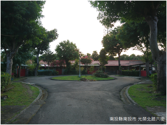 「囊底路」當屬中興新村極具代表性的規劃,所謂的「囊底路」,是指僅有一個出入口的道路,通常在封閉的一端設置呈小圓環狀的「迴車空間」,正如一個囊袋;除此之外,每戶人家大門都朝向道路,更可以發揮守望相助的功能。站在圓環中間,弟弟操作空拍機俯視這座雅緻的田園城市,父親則特別將車子駛進囊底路繞行一圈,果真暢行無阻。