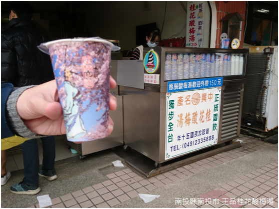 同樣是中興人的鄉愁,也是我童年印象中對中興新村的味覺記憶,則是老胡麵館旁的「王品桂花酸梅湯」,創辦於民國50年(1961),烏梅、仙楂、甘草、桂花,以及砂糖調製而成,基本上烏梅是酸梅湯主要的韻味,其中也可以感覺到仙楂的回甘,一杯在手,生津止渴。