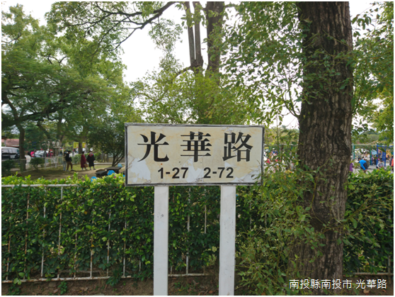 作為省政府所在地,中興新村創建初期的街道名稱基本上採用臺灣各縣市地名,民國49年(1960)路名重新規劃,原本入口的「臺北路」改稱為「省府路」,「光華十路」是以前的「雲林路」,中心市場背後的「光華四路一街」早期則被稱作「南投路」,遊逛期間,不知不覺也彷彿走遍臺灣各地。