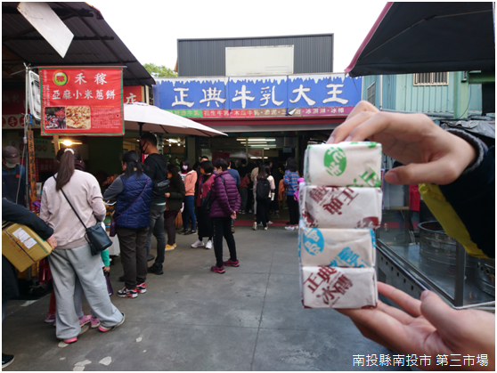同樣匯聚人潮的,是中興會堂南邊的「第三市場」,縱使已經下午四點,市場依然不乏前來打牙祭的饕客,坐在白鐵桌前,人手一盤現炸酥脆的臭豆腐,一旁亞麻小米蔥餅攤販前眾人聚精會神,望著小販將白麵團油煎成一片一片香酥金黃;不過,最受歡迎的當屬市場盡頭的「正典牛乳大王」,店門外排隊等候的遊人綿延不絕,都是為了招牌餅乾三文治冰磚而來。
