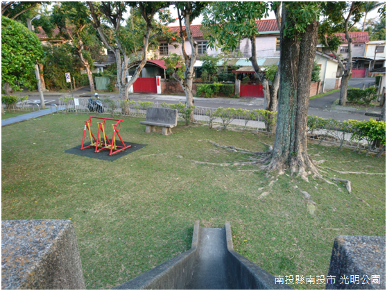 離開人聲鼎沸的市場,中興新村大多數地方依舊不掩寂寥,民國87年(1998)臺灣省虛級化,省政府轉變成行政院派出機關,隔年九二一大地震更加速中興新村的沒落。國史館臺灣文獻館附近的光明公園,園內環境整潔,輪廓渾圓的樹木備受悉心照料,然而,周圍二層樓房舍大門深鎖,零星破裂的窗戶玻璃在夕陽下顯露蕭瑟的氣息。