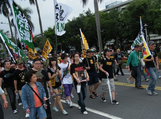 民進黨昨天舉辦嗆馬大遊行,台灣大學路線的隊伍從中午就開始集結,一直到下午三時許,民進黨主席蔡英文上台致辭後,隊伍正式出發;過程中支持者一度把台北市新生南路、和平東路等要道全數填滿,大樓上、天橋上與馬路旁不時有聲援者揮手致意。 遊行隊伍來自北、中、南各地,每隊都有標語、旗幟與呼喊口號;其中以大學生組成的「台灣青年逆轉本部」隊伍最為顯眼,一群年輕人邊大喊「陸生來台,台生跳海」、「禮義廉恥、政府無恥」等口號,邊揮舞著自製旗幟,讓一旁阿公、阿媽都熱烈鼓掌。 參加民眾可說是花樣百出,除了帶小嬰兒、小狗、各種自製標語,還有人邊吹奏小喇叭邊遊行,還有人自製逼真的馬頭、布袋戲玩偶等,甚至還有樂隊隨隊伍前進;訴求都是「反傾中,護台灣」、「反集遊惡法」等。 台灣大學一名張姓職員表示,馬英九跟胡錦濤要貓熊,還叫「團圓」,就是想跟胡團圓,他認為馬已經跟「共匪」同流,把台灣帶往萬劫不復的地獄,因此他要出來發出怒吼。 遊行過程十分順利,不過偶爾會有民眾抗議警方把通往總統府的路全封起來,大罵「根本不便民」;另外還有一名自稱姓台名灣的阿婆拿香對著總統府跪拜上香,要馬英九不要再欺負台灣人。 警方佈署大批警力與架起層層拒馬,除了指揮交通外,更注意是否有人存心滋事,所幸並無爆發衝突;而跟在人群中的小販,更是大發利市,各種商品叫賣聲不斷。