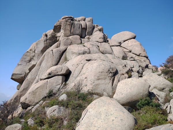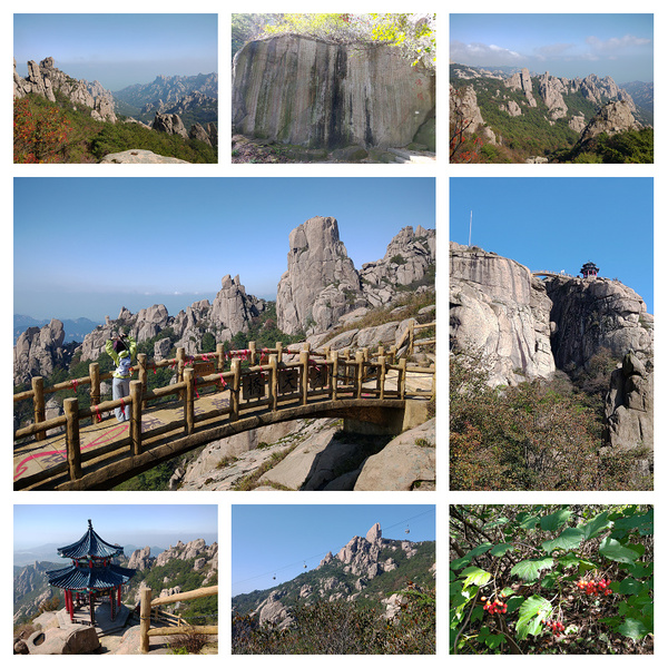 青島的6天5夜計劃,隨著天氣而做調整,前3天雨少,後3天雨多而且寒流報到: 在青島的第二天:不下雨 我買了2天的聯票含車資(一定要買車資),遊客中心到登山口搭車就要半小時左右,所以買景區內公車票很重要,今天天氣好,登山口8:00上山,約16:30下山,一路都是腳程没搭索道,沿途都是嶗山石的特殊景觀,對地質感興趣的遊者,一定要到巨峰景區,山道高高低低,不是一路向上或向下,比起登泰山難度更高,對膝蓋不好的人,建議搭乘索道上下,上頭還有許多要走的地方,走巨峰頂部從"離門"開始走、終於"坤門",再走回"離門"才結束,嶗山主要的宗廟還是以道教為主,可以看到海,但距離較遠,巨峰景區留有冰川的遺跡,石頭的堆疊也奇形怪狀,我覺得其岩石像豆腐般,蠻特殊的,是硬度強的岩石。
